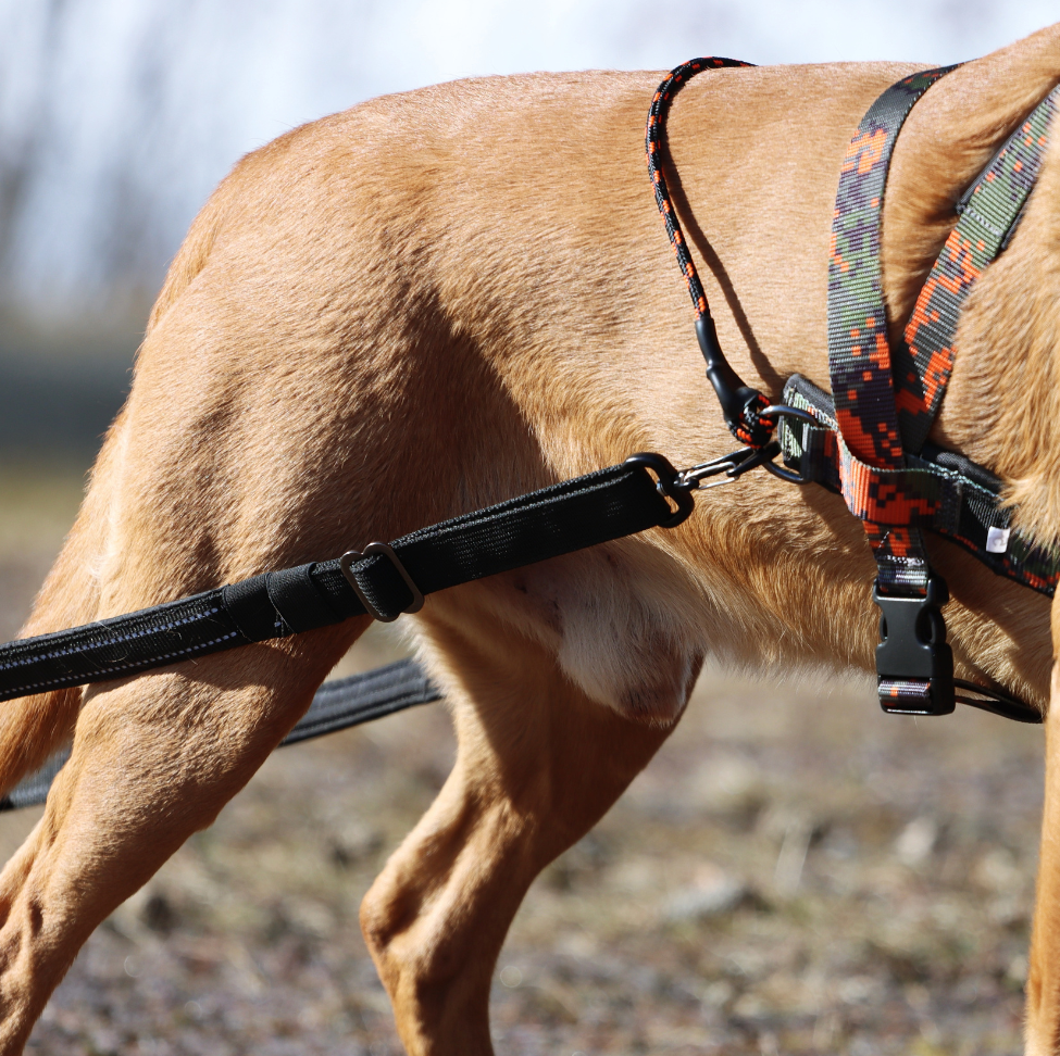 Justerbar längd 50–85 cm (observera att produktets längd mäts från krok till pinne, vilket på hunden motsvarar från mitten/bakre revbenen och bakåt)